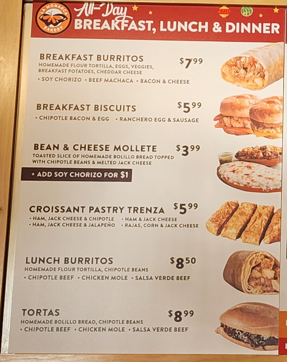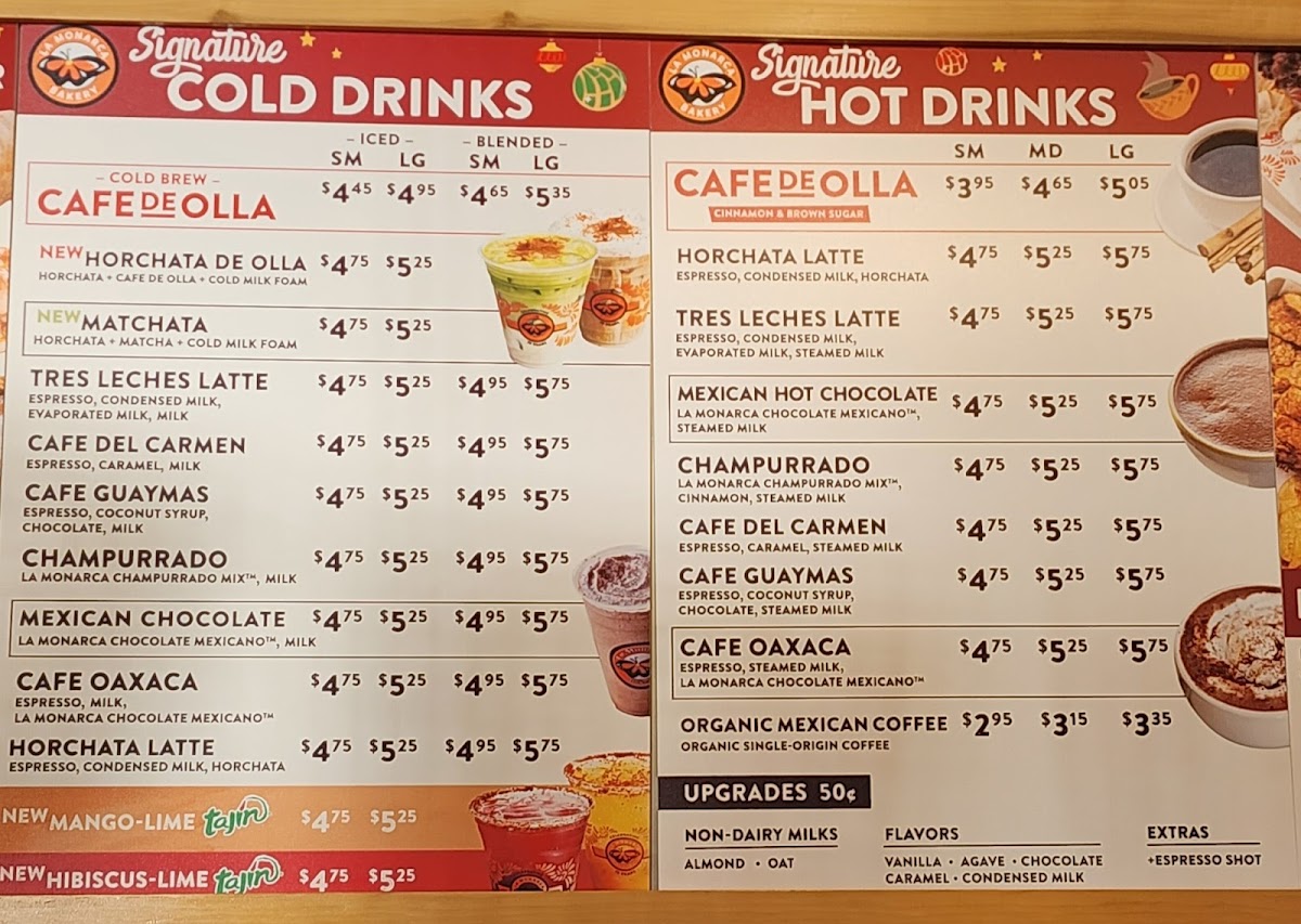 Welcome to La Monarca Bakery & Cafe, a gem nestled on E Cesar E Chavez Ave in Los Angeles. This delightful café brings a taste of traditional Mexican flavors, featuring an inviting menu that promises fresh-baked goodness and comforting drinks. Begin your day with their famous Pan Dulce, particularly the Conchas, which entice with their crunchy cookie topping and delicate sweetness. Indulge in Danish pastries flavored with pineapple or guava, or savor the flaky Churro Rolls.